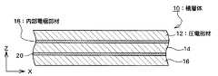 図1に示すS101の工程に先立って、図2に示すような分極済みの積層体(積層アッセンブリ)10が用意される。積層体10を構成する複数の部材はあらかじめ相互に接着されている。具体的には、積層体10は、図2に示されるように、全体として、平板状の形状を有し、具体的には、複数の圧電部材(圧電体)12,14,16を有する。それらの中で、隣接する2つの圧電部材12,14(14,16)の間に、水平電極部材としての内部電極部材18,20が設けられている。この積層体10における、X方向のサイズは例えば20mmであり、Y方向のサイズは例えば20mmであり、Z方向のサイズは例えば0.51mmである。ちなみに、圧電部材12,14,16の材料としては、公知のPZTなどの圧電材料をあげることができる。もちろん、それ以外の材料(例えば複合材料)で各圧電部材12,14,16を構成するようにしてもよい。なお、図2〜図9においては、図面における左右方向がX方向(第1水平方向)であり、図面における上下方向がZ方向(垂直方向)である。Z方向は超音波の送受波方向に相当する。