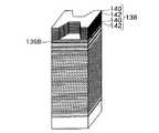 次に、図23から分かるように、光露光プロセスによりマスクを形成し、ドライエッチングにより多層膜138の一部をエッチングして、メサを形成する。この際、多層膜138の一番下側のAl0.05Ga0.95N層142はエッチングしない。その後、マスクを除去する。Next, as can be seen from FIG. 23, a mask is formed by an optical exposure process, and a part of the