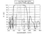 また、図26の光素子の反射鏡Mは、図27に示したように、反射する光の波長範囲が非常に広い。従って、レーザLDのマウント位置、反射鏡Mの各層の膜厚、レーザ光Lの波長、等が多少ずれても反射率がほとんど変化しない。このため、図26の光素子では、安定した動作が得られる。 26 has a very wide wavelength range of reflected light, as shown in FIG. Therefore, the reflectance hardly changes even if the mounting position of the laser LD, the film thickness of each layer of the reflecting mirror M, the wavelength of the laser light L, etc. are slightly shifted. Therefore, a stable operation can be obtained with the optical element of FIG.