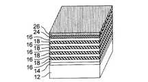 また、図26の光素子の反射鏡Mは、図2に関して前述したように、少ない積層数で高い反射率が得られる。このため、図26の光素子を用いることで、製造を容易にし、歩留まりを高くすることがきる。 In addition, as described above with reference to FIG. 2, the reflector M of the optical element in FIG. 26 can obtain a high reflectance with a small number of layers. For this reason, by using the optical element of FIG. 26, the manufacturing can be facilitated and the yield can be increased.