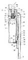 スライダ25の裏面には凹部33が形設され、スライダ保持部26の内部にはこの凹部33に係合する凸部34を有するロック片35が配置される。ロック片35は下端を中心に垂直面内で回動可能であり、バネ36により、凸部34を凹部33に係合させる方向に付勢されている。