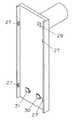 図8は、本実施例の電池パック23の斜視図であり、図9は、取付部24の斜視図である。電池パック23の長側面には、それぞれガイド溝26があり、取付部24のガイド27により、まず取付面に垂直に電池パック23を取り付け、その後、取付面に平行にスライドさせるというダブルアクション機構による固定を実現している。さらに、電池パック23の底面には、充電正極端子用凹部28a、充電負極端子用凹部28b、サーミスタ端子用凹部28c、放電正極端子用凹部28d、放電負極端子用凹部28eおよびロック用凹部28fの合計6個の凹部がある。また、取付部24の取付面には、フック用窓29と、形状がL型の正極端子30および負極端子31がある。