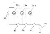 同様に、青色用駆動ドライバ50は、第5抵抗51と第6抵抗52と第5スイッチ53と第6スイッチ54とで構成されている。すなわち、第5抵抗51および第6抵抗52の一端部が青色LEDチップ24aのカソード端子に接続されており、第5抵抗51の他端部が第5スイッチ53の一端部に接続されており、第6抵抗52の他端部が第6スイッチ54の一端部に接続されており、第5スイッチ53および第6スイッチ54の他端部が接地(アース電位に接続)されている。