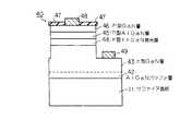 これらの各層の不純物濃度は、n型GaN層63ではSiが2×1019cm-3及びMgが5×1016cm-3、n型AlGaN層64ではSiが2×1019cm-3及びMgが8×1016cm-3、アンドープGaN層65ではMgが1×1017cm-3、p型AlGaN層66ではMgが3×1019cm-3、p型GaN層67ではMgが1×1020cm-3である。The impurity concentration of each of these layers, n-type GaN layer 63 in the Si is 2 × 1019 cm-3 and Mg 5 × 1016 cm-3, the n-type AlGaN layer 64 Si is 2 × 1019 cm-3 and Mg is 8 × 1016 cm−3 , Mg is 1 × 1017 cm−3 in the undoped GaN layer 65, Mg is 3 × 1019 cm−3 in the p-type AlGaN layer 66, and Mg is 1 in the p-type GaN layer 67. × 1020 cm-3 .