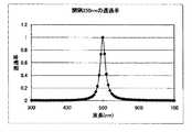透明基板301の表面にうねりが存在しても、うねりを犠牲層が追従し、その上に着く反射膜304も前記うねりを反映する為、場所による間隔の差は非常に少なくなり、ある場所での間隔307と他の場所での間隔308は等しくなるのである。従って、場所により干渉波長がずれることのない精度の良い干渉フィルタが得られる。ここで得られた干渉フィルタの波長に対する透過率を示したグラフを図4に示す。