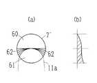 図6は第3の老視矯正パターンを説明する図である。第3の老視矯正パターンは、図6(a)に示す如く、半円状の上方矯正領域60を遠見用、サークル7´と半円サーク11a´で囲まれた部分の下方矯正領域61を近見用としたパターンである。領域62は上方矯正領域60と下方矯正領域61の形状を滑らかに繋ぐ移行領域である。
