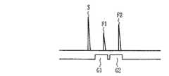 この超音波斜角探傷法で得られる信号波形(−般に「Aスコープ」と称す)は、例えばカップリングに水を用いる水浸法では、図3(b)に示すように、時間軸上で、外表面で反射する表面エコーS、欠陥で反射する内面欠陥エコーF1と外面欠陥エコーF2の順に現れるが、これらの表面エコーSと内面欠陥エコーF1、外面欠陥エコーF2を識別するために、欠陥検出ゲ−トG1,G2を用いて選択的に信号を抽出している。 A signal waveform (generally referred to as “A scope”) obtained by this ultrasonic oblique flaw detection method is, for example, on the time axis as shown in FIG. 3B in the water immersion method using water for coupling. Thus, the surface echo S reflected on the outer surface, the inner surface defect echo F1 reflected on the defect, and the outer surface defect echo F2 appear in this order. In order to identify these surface echo S, the inner surface defect echo F1, and the outer surface defect echo F2, A signal is selectively extracted using the defect detection gates G1 and G2.