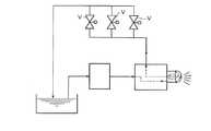 ボイラ等における温度調節を目的とした液体燃料の流量制御では、例えば作業員がボイラの温度を見ながらマニュアルでニードルバルブを操作するといった方法がとられていた。また、図6に示すように、パルス信号によって開閉制御できる複数のバルブVを燃料管の途中に並列に接続し、電気的な操作で各バルブVの開・閉を組合せることによって燃料の流量を調節する多段階切換弁方式も用いられていた。