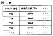 FIG. 19 is a diagram showing an example of sales management information stored in a server constituting the self-order system.