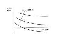 エンジントルク推定部S108では、図6に示したエンジン全性能マップを用いて、エンジン回転速度Neおよびスロットル開度TVO(またはアクセル操作量)から、エンジントルクマップ値tESを検索し、これにエンジンの動特性(吸気系の輸送遅れ分)を時定数TEDの一次遅れとした場合のフィルタを通過させて、エンジントルク推定値tEHを、The engine torque estimation unit S108 searches the engine torque map value tES from the engine rotation speed Ne and the throttle opening TVO (or the accelerator operation amount) using the engine total performance map shown in FIG. The engine torque estimate tEH is passed through a filter when the dynamic characteristic (the transport delay of the intake system) is the first-order delay of the time constant TED ,