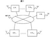 本実施例のPKIシステムは、電子的に手続を行う複数のEE1装置(11)〜EEN装置(11)(EE装置(11)と総称する)と、公開鍵証明書発行業務を行うCA1装置(13)〜CAM装置(13)と、公開鍵証明書の有効性確認局VA(14)と、それぞれを接続するインターネット等のネットワーク(以下、NETという)16からなる。PKI system of this embodiment includes a plurality of EE1 apparatus for performing electronically procedure (11) ~EEN device (11) (collectively referred to as EE apparatus (11)), the public key certificate issuing business CA1 apparatus and (13) to CAM device (13), a validation station VA of the public key certificate (14), a network such as the Internet connecting each (hereinafter, NET hereinafter) consisting of 16.