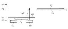 ここで、吸着保持部14は光学ユニット12によって撮像処理を行うための高さ位置である処理位置P1に基板Wを保持する。一方、搬出入口13の高さ位置は移載アーム75との間で基板Wの受け渡しを行うための受渡位置P2とされている。図6に示すように、受渡位置P2は処理位置P1よりも上方である。