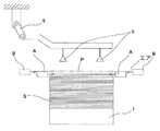 以下、本発明の一実施形態を図に基づいて説明する。図4はシート取り出し装置のノズル配置を説明する平面図、図5は同取り出し装置の要部を示す正面図である。両図に示すように、昇降可能に形成された載置台1の上に複数枚のプレス用鋼板(以下、単に「鋼板」という)Pを積み重ねた積層Sがセットされる。本例では、板厚が0.4〜4mm、一辺の長さが2m程の四角形の鋼板Pを対象ワークとする。載置台1の側部には起立する丸棒状の積層ガイド2が設けられ(図5では省略した)、4本の積層ガイド2により積層Sの位置決め(後記するように、上から数枚の鋼板が浮遊するが、その浮遊状態の鋼板の水平位置も積層ガイド2で規制される)がなされる。積層上端の両側には、対を成す第1ノズルAと第2ノズルBが、片側について2組づつ配設されている。なお、鋼板Pの大きさに合わせて適宜にノズル対を増減させるのが好ましい。