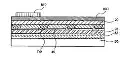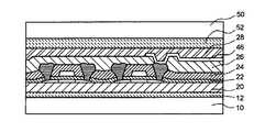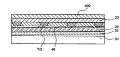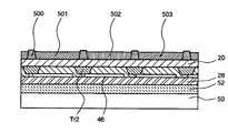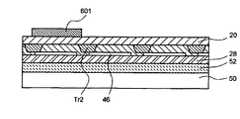 図4に、本願発明で提案する剥離方法を用いて、薄膜デバイスを転写するための当該薄膜デバイスの断面構造を示す。図4では、一例として、前記アクティブマトリクスのスイッチング用トランジスタ部の断面構造を示している。本実施例では、基板10の上に剥離層12を形成し、更にその上に下地層20を介して薄膜トランジスタを形成する。