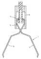 図2においては、クリップ1は基端寄りの部分が外套管2の先端内に収容されていて、開いた状態の腕部1aとその各先端に内方に向かって突出形成された先端爪部1dとが見えている。