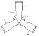 クリップ1は、例えばバネ用ステンレス鋼板等を曲げて一つながりに形成されていて、基端部1bにおいて互いにつながっている3個の腕部1aが相互に交差することなく放射状に開閉自在に均等の間隔(即ち、略120°間隔)に配置されている。