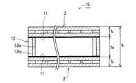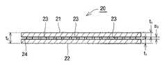 薄板ガラス21,22は厚さt5で、2枚の薄板ガラス21,22間の隙間はs3である。