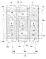 各基板4,5上のパターンの配置は図1に示す通りであり、下基板4上に、図1の横方向に延在するセグメント電極10(輪郭を1点鎖線で示す)がストライプ状に形成されている。一方、上基板5上には、セグメント電極10と直交するように図1の縦方向に延在する複数のコモン電極17(輪郭を実線で示す)がストライプ状に形成されている。カラーフィルター15のR、G、Bの各色素層13R,13G,13B(輪郭を破線で示す)は各コモン電極17の延在方向に対応して配置されている。すなわち、本実施の形態におけるカラーフィルター15はいわゆる縦ストライプと呼ばれるパターンのものであり、R、G、Bの色素層13R,13G,13Bの各々がストライプ状に縦に同色で配置されている。これにより、図1に示す横方向に並んだR、G、Bの3個のサブ画素領域28R,28G,28Bで表示パターンを構成する1個の画素29が構成されている。なお、サブ画素領域とは、1つのセグメント電極10と1つのコモン電極17が交差した部分であって、表示の最小単位部分のことである。また、隣接するサブ画素領域28R,28G,28Bの間を区画するように格子状の遮光部14(ブラックマトリクス)が設けられている。遮光部14の開口部分が、実際に表示に寄与する表示領域となる。図1において、遮光部14が存在する領域には右上がりの斜線のハッチングを施した。