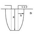 図5に示す垂直エッチングレートaとサイドエッチングレートbを測定し、高速エッチング性を垂直エッチングレートaで評価し、形状性をサイドエッチングレートbの垂直エッチングレートaに対する比(エッチングレート比)b/aで評価した。その結果を図6および図7に示す。図6はO2/SF6の値と垂直エッチングレートaおよびエッチングレート比b/aとの関係を示すグラフである。また、図7はC4F8/SF6の値と垂直エッチングレートaおよびエッチングレート比b/aとの関係を示すグラフである。図6からO2/SF6が0.1〜0.5の範囲で高速エッチング性および形状性が良好であることが確認される。特に0.15〜0.3で垂直エッチングレートaとエッチングレート比b/aとのバランスが良く、この範囲がより好ましい。また、図7からC4F8/SF6が0.3〜0.6の範囲で高速エッチング性および形状性が良好であることが確認される。特に0.4〜0.5の範囲で垂直エッチングレートaとエッチングレート比b/aとのバランスが良く、この範囲がより好ましい。