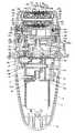 上面部にフック連結部10を備えている上記基台8は、モータ内装用基台12とこれの側方開口部にビス131nで固定されるカバー13とからなるもので、モータ内装用基台12の下部のモータ内装部12aに下方からモータ3が嵌め込まれている。そして、カバー13で側方開口部が覆われたモータ内装用基台12の上部内の空間16には過負荷クラッチ18及びギア19が納められており、半割ケーシング7,7内の突起7d,7e間にモータ内装用基台12の支持枠25が嵌め込まれることで本体ハウジング1の内部に配されている。