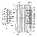 ここで、一つのばね片370aは、隣り合う2つの開閉レバー38b,39dを外側に押し、またばね片370aは開閉レバー38c,39aを押すものであり、このために4本のばね片370aを一体に有している復帰ばね370で、組み込まれた全ての開閉レバー38a,38b,38c,38d,39a,39b,39c,39dを外側へ付勢している。