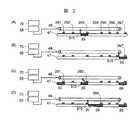 ベルト駆動部48は、駆動源に接続された駆動プーリと他のプーリの間に張設された無端ベルトを有し、この無端ベルトにラック移動器310が固定される。ラック移動器310のアームは、所定角度だけ回転でき、図2(A)のように検体ラック2aの後端を押す場合には回転が阻止されるが、図2(C)のように緊急検体投入部のラック検知器291側から第1搬送ライン51への引渡し位置217のラック検知器297側の方へ進められる検体ラックに対してラック移動器310が逆方向に移動する(戻る)場合には、回転自在となり検体ラックに影響を与えずに戻ることができる。図1における他のラック移動器の構成も同様である。