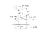 図6は指示具1のLED21を上部から見た平面図である。中心線26は赤外LED21Aと21Bの中間とレンズ32を結ぶ直線である。図6には指示具1が中心線26から角度lだけ斜め左方向を向いている場合を示している。中心線26の延長線上に垂直に投影面24を想定すると、投影面24では、赤外LED21Aと21Bの間隔はxとなり、また赤外LED21Eは中心線からhだけ左にずれて投影されることになる。