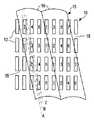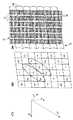6及び8ビュー装置においては水平分解能が大幅に増大されるのに対して、垂直分解能はむしろ貧弱である。しかしながら、この状況は次の方法で大幅に改善され得る。各レンチキュラーは列内の隣接するディスプレー素子の全数の上に横たわり且つ光学的に共働する必要はない。再び同じディスプレーパネルを用いる別の好適な実施例においては、レンチキュラーが上述の装置におけるように各列上の3又は4個のディスプレー素子を覆うよりもむしろ、その代わりにそれらが2 1/2又は3 1/2のディスプレー素子を覆うように設計されて、すなわちレンチキュラー素子のピッチが、それぞれ5ビュー及び7ビューシステムを与えるために、列方向においてディスプレー素子のピッチの2 1/2及び3 1/2倍に対応するように設計される。これらにおいて、下にあるディスプレー素子から各レンチキュラーにより与えられる出力ビーム、5又は7は、相互に異なる方向にあり且つそのレンチキュラーの縦軸の周りに角度的に広がる光学軸を有している。7ビューシステムに対する装置が図3に示されている。前述のように、このディスプレー素子はそれらが属するビュー番号に従って番号付けされており、且つ破線A,B及びCがそれぞれの異なる水平観察角度に対して同時に観察される点を示している。これで判るように、各レンチキュラー16の下の観察番号は(図2装置における場合であったように)ディスプレー列に沿って反復されはしないが、隣接するレンチキュラーの間の1列だけオフセットされる。この種の装置は結果として生じる水平及び垂直分解能の間に改善された平衡を与える。この原理は、例えば2 1/3又は2 1/4ディスプレー素子を覆うレンチキュラーへ拡張され得て、且つ3ビューを与える最低の1 1/2ディスプレー素子へ下げ得る。