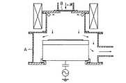 中間の磁場コイル4と誘電体側壁2の外側との間には1重を含む多重のプラズマ発生用の高周波コイル7が配置され、この高周波コイル7は高周波電源8に接続され、三つの磁場コイル3、4、5によって真空チャンバー1の上部に形成された磁気中性線6に沿って交番電場を加えてこの磁気中性線に放電プラズマを発生するようにしている。