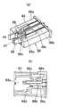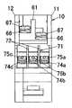 固定接点板62a,62bおよび可動接点板63a,63bは、接点基板61に取着したプリント配線基板よりなる回路基板65に電気的に接続される。回路基板65には上述したダイオードやリセット用の微分回路の回路部品が実装される。さらに、接点基板61には一対のコイル端子板66が固定され、各コイル端子板66には座金付の端子ねじ67が螺合する。したがって、コイル端子板66を通して入力される外部信号を受けてコイル25に通電すると、通電方向に応じてプランジャ27が進退するのである。ここに、両コイル端子板66は上下にずれた位置に配設されている。また、接点基板61の上面には、固定接点板62a,62bおよび可動接点板63a,63bと回路基板65とを仕切り、またコイル端子板66と他の部材との間を仕切るように仕切片61bが突設される。