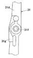 ここで、各軸ピン33はそれぞれ支持片26aを通して連動レバー31に挿入され、両軸ピン33は一直線上に配列されるが、連動レバー31の内部では両軸ピン33が互いに接触しないように長さ寸法が設定されている。そして、連動レバー31の内部では両軸ピン33の間に連動レバー31の構成材料である合成樹脂が存在していて両軸ピン33間は絶縁されている。