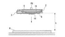 図4に示すように、本液晶表示装置の画像表示面Sの中央部に荷重計測用のピックアップセンサ(リオン社製モデルPV90B)PUを両面テープ(厚み25μm)で貼着した。この供試体を、非表示面Bの側を下にして、机上のラワン板(板厚30mm)上方に水平な状態で保持し、落下高さhを10cmから100cmまで変化させ自然落下させた。