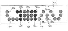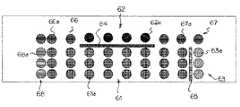 一方、電源系の接点部41の右側には、グランド系の接点部44(ストリップライン)を介して、信号系の接点部45(3つの円形状の接点45a,45a,45aが4列)が配置されている。そして、更に、それらの外側に、グランド系の接点部46,47(3つの円形状の接点46a,・・,47a,・・)を介して、24Vの電源系の接点部48,49(3つの円形状の接点48a,・・,49a,・・)がそれぞれ配置されている。前記グランド系の接点部44は、複数の信号系の接点部45の接点45a,・・又は電源系の接点部41の接点41a,41aがなす列に沿って長い形状のストリップラインとされ、少ないスペースに配置されている。
