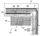 この画像表示領域101のベース基板周辺部分に走査ドライバ105およびデータドライバ106が設けられ、これらの走査ドライバ105およびデータドライバ106の更に周辺部分であってベース基板の端縁部分には、一部端縁上に設けられた信号入力端子107から対向基板上の対向電極(図示せず)に給電するための複数のコモン転移電極108が配設されている。これらのコモン転移電極108は導電ペーストを介して対向電極(図示せず)の外周部分に電気的に接続されている。