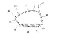 図1及び図2は請求項1に係る発明をウッドのゴルフクラブヘッドに適用した一実施形態を示し、図中、35はステンレスやチタン,アルミニウム,マグネシウム合金等の金属材料で成形されたヘッド本体で、図2に示すようにヘッド本体35は、ホーゼル部37とバック部39,トップ部41,フェース部43が一体成形されてソール側が開口している。