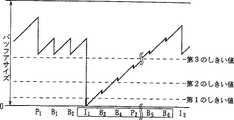 さらに符号化制御回路7はVBVバツフアとして機能するデコーダバツフア18におけるデータ占有量のしきい値として、第3のしきい値、第2のしきい値及び第1のしきい値を有する。これら第3、第2及び第1のしきい値は、それぞれBピクチヤ、Pピクチヤ及びIピクチヤに対応している。またこれらしきい値の値は、画像を復号する際の画像符号化タイプの重要度の低い順に高くなるように、第3のしきい値>第2のしきい値>第1のしきい値に設定されている。かくして、符号化制御回路7は、Bピクチヤが符号化されているときに、可変長符号化回路11から送出される画像データの符号発生量に基づき、デコーダバツフア18よつて形成されるVBVバツフアにおけるデータ占有量が第3のしきい値を下回るような符号量を有する画像データが発生した場合には、量子化回路10にスキツプ実行信号S9を送出して、当該符号化中のBピクチヤのこれ以降の画像データをマクロブロツク単位でスキツプさせその結果データ占有量の傾下を抑えるようになされている。