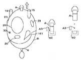 図7は暴漢等が携帯用警報装置1を奪い取ることを目的に強い力で引き抜いた時に操作される場合である。起動部Aは携帯用警報装置1の起動部分である。通常使用時には携帯用警報装置1の内部に配置された固定部A2に結合し、強い力で引き抜いた時にのみ固定部A2から外れ携帯用警報装置1から離脱できるように設けられている。この固定部A2の上方にはマイクロスイッチからなる起動スイッチA3が配置され、起動部Aが上記固定部A2に結合している時はこの起動スイッチA3は起動部Aに結合してOFF状態にあり、起動部Aを強制的に引き抜いて携帯用警報装置1から離脱させたときにはONするように設けられている。この起動スイッチA3はONすると警報発生手段Bを電源電池29に接続し、警報発生手段Bに電圧を供給し警報発生手段Bを作動させることができるように設けられている。  FIG. 7 shows a case where the operation is performed when a thief or the like is pulled out with a strong force for the purpose of taking the
