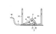 前記切替機構は、ベース部上に並べて配置され、それぞれがベース部の長手方向と直交する側方へ傾斜可能な二つの支持部材を有し、一方の支持部材に第1リング部材が支持され、他方の支持部材に第2リング部材が支持され、両支持部材とベース部との間には、リング部材の端部どうしが離間する方向へ支持部材を附勢する弾性体が設けられている構成とすることもできる。このように構成した場合、二つの支持部材を作動させて、リングを閉リング姿勢及び開リング姿勢に変化させることができる。 The switching mechanism is arranged side by side on the base portion, each of which has two support members that can be inclined to the side perpendicular to the longitudinal direction of the base portion, the first ring member is supported by one of the support members, The second ring member is supported by the other support member, and an elastic body that biases the support member in a direction in which the end portions of the ring member are separated from each other is provided between the both support members and the base portion. It can also be. When comprised in this way, two support members can be operated and a ring can be changed into a closed ring attitude | position and an open ring attitude | position.