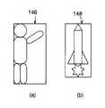 人物(図14(b))とロケット(図14(c))では、画像データと形状データの両方が必要となる。図18(a)は、人物の形状データを示し、図18(b)はロケットの形状データを示す。形状データは、対象となるオブジェクトを包含するバウンディングボックスと呼ばれる矩形領域で規定される。図19(a),(b)に示す矩形142,144がバウンディングボックスである。任意形状の画像を扱う場合も、符号化の処理単位はマクロブロックとなるので、バウンディングボックスは、マクロブロックの整数倍になる。図20(a),(b)は、バウンディングボックス内でのマクロブロック単位の分割の様子を示す。バウンディングボックス内のデータは、オブジェクトの内部か外部かの2値データとなる。