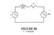 圧縮機モータの巻線へ印加される電圧を機械系の周波数に同期させる方法は周知のものである。自由ピストン圧縮機に用いられる永久磁石モータの場合、図8aに示すようにピストン速度に比例した逆起電力(逆EMF:back electromotive force)がモータの巻線に誘起される。図8bにモータの等価回路を示す。交流電圧(V)を交番起電力(alternating EMF)(αν)に同期して印可して、圧縮機に動力を供給する。米国特許第4,320,448号(Okuda外)は、モータの逆起電力のゼロクロスを検出して、印加電圧のタイミングを決定するという方法を開示している。モータ巻線への電圧の印加を調整して、起電力がゼロレベルを交差して逆起電力のゼロクロス検出ができる時点で電流がゼロになるようにする。