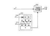 図11では、推定タップ数が3の場合の枝メトリック計算回路が示されている。推定伝送路モデル121では、各枝に対応する1時刻過去の状態が保有する推定伝送路特性を選択伝送路特性入力端子113から受け取り、さらに、枝により決定されるデータ候補をデータ候補入力端子114から受け取り、これらに基づいて受信信号のレプリカを作成する。2乗誤差作成回路122では、受信信号と受信信号のレプリカとの2乗誤差を作成し、これを枝メトリックとして出力端子115から出力する。