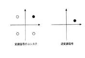 図4は、上記受信信号の一例を示す図であり、図5は、QPSKを想定した場合の逆変調信号の作成処理を示す図である。逆変調というのは、受信信号を送信信号で除算した値であり、換言すると、各時刻における伝送路特性の検出値ということになる。たとえば、図5のようにQPSKを想定すると、変調信号の黒丸を送信信号の候補とした場合の逆変調信号は右の図になる。