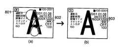 このときマイコン106は、図15のように、スクロールバー501がタッチされているとき(S403)、所定時間間隔ごとに接触部の座標を入力し(S404)、タッチされ続けているたびに前回入力した座標(初期値はサムネイルA〜Fに対応する座標)と比較する(S406)。座標値に変化が生じた場合、座標変化分だけスクロールバー501をずらし、表示される複数のサムネイルをスクロールする(S407)。