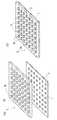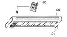 以下、図1(a)および(b)や図2(a)および(b)を参照しながら、従来のLED照明光源の問題を説明する。まず、LEDの連続した点灯により、集積された多数のLED基板の中央部が熱くなり、LED基板の周辺部との温度差が大きくなるという問題がある。例えば、図1(a)および図2(a)に示す構成は、LEDのドットマトリクスディスプレイに採用されている。LEDディスプレイでは、板23が各LEDの発光と非発光の部分のコントラストを上げるように機能する。ディスプレイの場合、全てのLEDが常に大出力で点灯状態になることはなく、発熱は大きな問題にならないが、照明装置として使用する場合には、全LEDが長時間点灯状態を維持するため、発熱の問題が顕在化する。