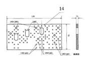また、基板用平板状部材(以下基板と記す)に用いられる材料としては、硬質塩化ビニール樹脂、ポリスチレン樹脂、ABS樹脂、ポリエチレン樹脂、ポリプロピレン樹脂、ナイロン樹脂、アクリル樹脂、フッ素樹脂、ポリカーボネート樹脂、メチルペンテン樹脂、ポリウレタン樹脂、フェノール樹脂、メラミン樹脂、エポキシ樹脂等のプラスチックや、アルミニウム、真鍮、鉄、銅、ステンレス、チタン合金、マグネシウム合金、ジュラルミン等の金属、ガラス、セラミックス、があげられる。