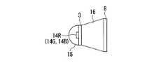 テーパロッドレンズアレイ4は、楔形のガラス柱からなる複数のテーパロッドレンズ16が位相差板3を介して各LED14R,14G,14Bに対応して配置されたものである。図2において、テーパロッドレンズ16の左側の面が入射端面、右側の面が出射端面である。個々のテーパロッドレンズ16は入射端面側から出射端面側に向けて先拡がりのテーパ状の形状となっている。同様に、テーパロッドレンズアレイ4の出射端面側に設けられたロッドレンズアレイ7は、入射端面側と出射端面側とで同径のガラス柱からなる複数のロッドレンズ17が、各LED14R,14G,14B(各テーパロッドレンズ16)に対応して配置されたものである。