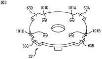 ホルダ32の周縁部には、ホルダ規制部51A乃至51Dに対応して被規制部材63A乃至63Dが形成されており、ホルダ32がベース31上に配置されたとき、この被規制部材63A乃至63Dの変移(回動および離脱)が、ホルダ規制部51A乃至51Dによりそれぞれ規制される。
