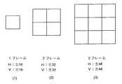 図16に示すように、一般に動き検出に必要なサーチ範囲は基準フレームと検索フレームとのフレーム間隔に比例して増大することが望ましい。ここでは、ブロックサイズが16×16の場合について説明を行なう。例えば1フレーム離れた場合にサーチ範囲が水平方向、垂直方向共に±16とすると、2フレーム離れた場合には±32、3フレーム離れた場合には±48のサーチ範囲とすることが望ましい。