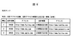 この統計処理は、たとえば図4(a),(b) に一例を示すように、閲覧された時間、閲覧された回数に対応してそれぞれ時間が長い順、回数が多い順に、URLとそれに対応する合計閲覧時間、合計閲覧回数がランク付けされて処理され、いずれも性別、年齢層別、地域別、総合合計などに分けて計算される。