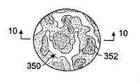 図9、図10を参照するに、別の形態では、移植片320aは人の海綿骨に類似の海綿状材料350から形成することができる。移植片は間隙部352を有し、そのため外表面338は図9〜10のような形状を有する。移植片320aは全体的又は部分的に海綿状材料から製作して、間隙部352が移植片の外表面338及び/又は内部全体に存在するようにし、それにより骨の内方成長を可能にし、骨癒着促進材料を保持することを可能にしてもよい。  Referring to FIGS. 9 and 10, in another form, the